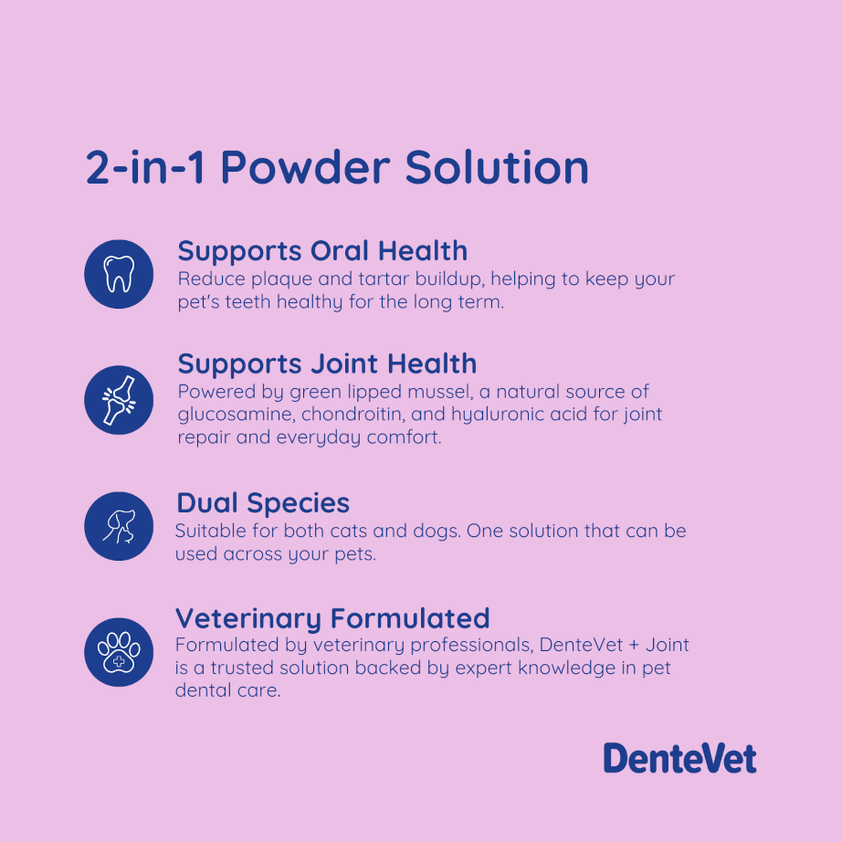 Helps reduce bad breath, plaque, and tartar, and supports jpint health. No preservatives. No artificial flavours. Easy to use for pets where brushing their teeth is difficult.