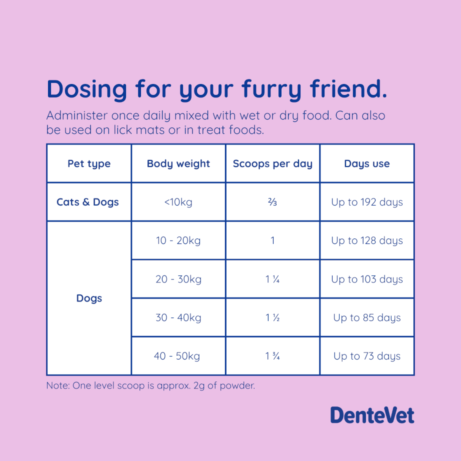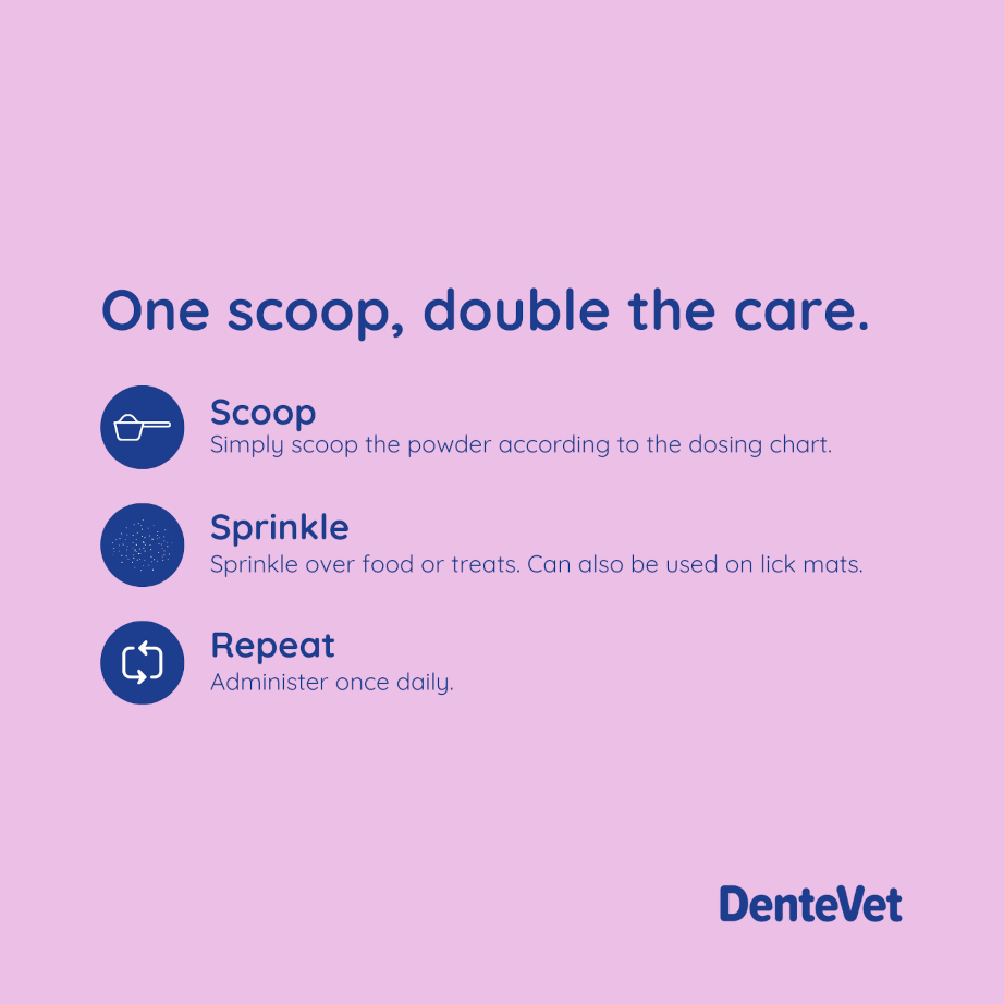 It can be used in food, on lick mats, or in treat foods. It doesn’t have to coat their teeth and gums to be effective, and is great for those pets that gulp their food. Do not give to pregnant or lactating pets as product has not been tested in these groups. Do not give to pets with diagnosed thyroid diseases.